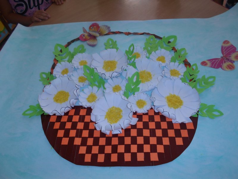 Итогом НОД стала коллективная работа "Корзина ромашек"