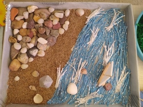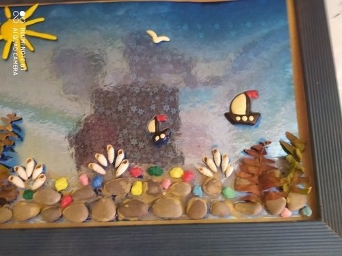 У нас в детском саду работает выставка совместных работ с родителями на тему: "Летние воспоминания".