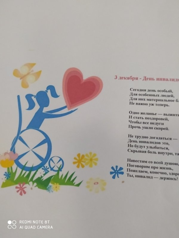 В рамках Международного дня инвалидов в старшей и подготовительной группах воспитатели организовали беседы и НОД на тему "Согреем душу теплым словом".