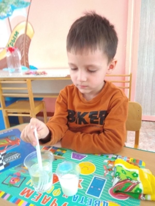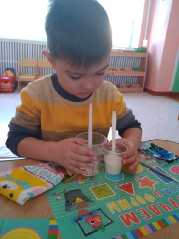 Воспитатель средней группы Айше Усмановна провела с детьми НОД "Мы - исследователи". Дети изучали свойства воды.