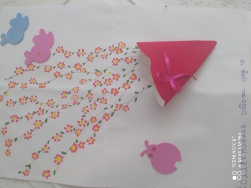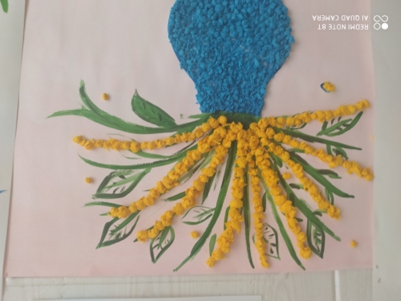 Наши воспитанники подготовили коллективные работы "Букет для милой мамочки".