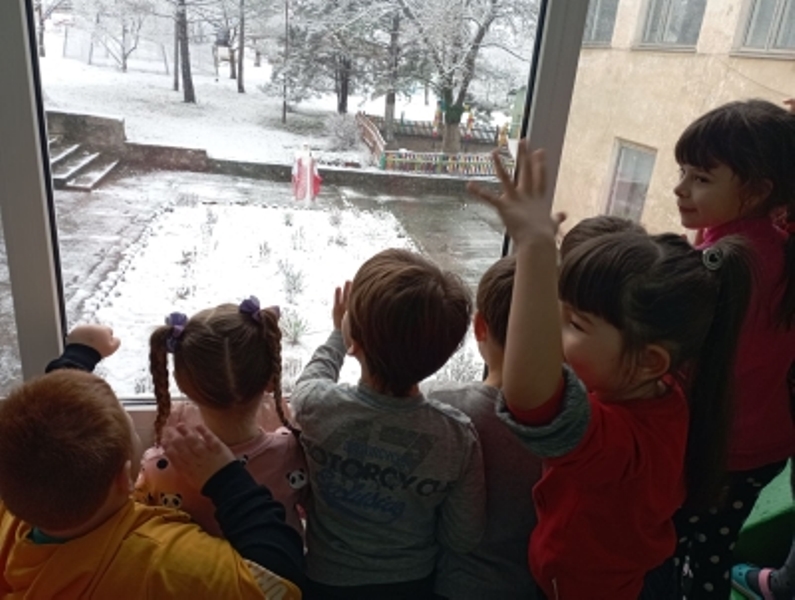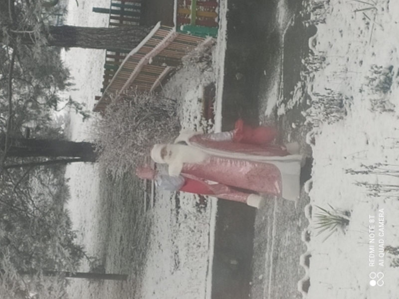 Сегодня выпал снег и мимо детского сада "Тополек" проходил настоящий Дед Мороз