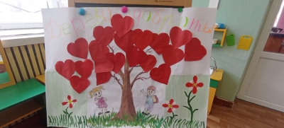 Воспитатель старшей группы Айше Усмановна организовала НОД на тему "Дорогою добра". Дети совместно изготовили коллективную работу "Дерево добра".