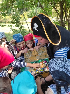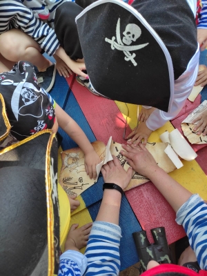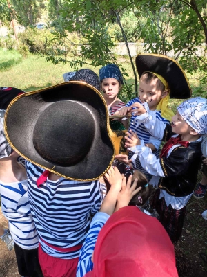 Сегодня воспитатели Ирина Сергеевна и Ильзара Азатовна организовали с детьми квест на тему "Пиратская вечеринка. В поисках сокровищ". Дети с удовольствием превратились в пиратов и искали сокровища.