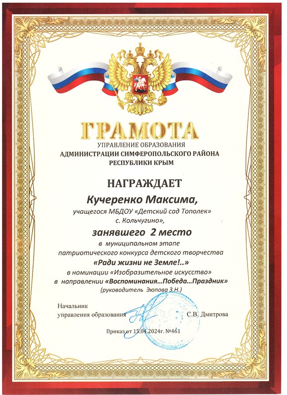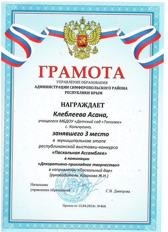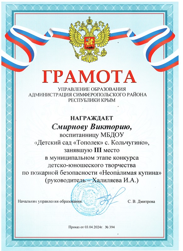 Муниципальное бюджетное дошкольное образовательное учреждение «Детский сад «Тополек» с. Кольчугино» Симферопольского района Республики Крым