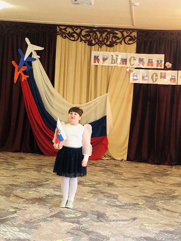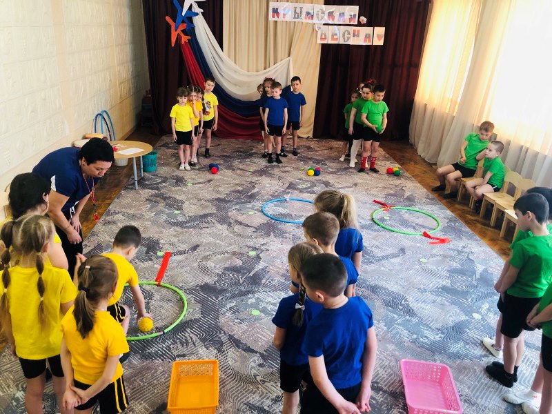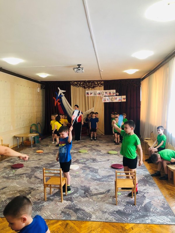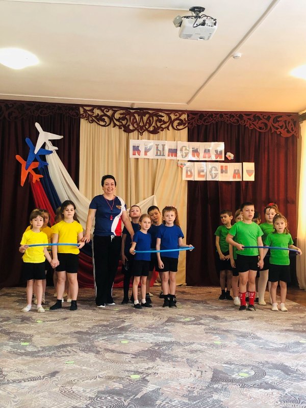 В канун 11-й годовщины воссоединения Крыма с Россией инструктор по физкультуре Светлана Васильевна провела физкультурное мероприятие с воспитанниками старшей и подготовительных групп «Крымская весна».
